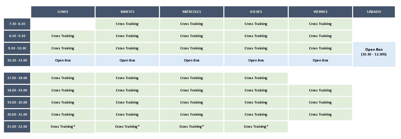 **Open box = entrenamiento libre.
