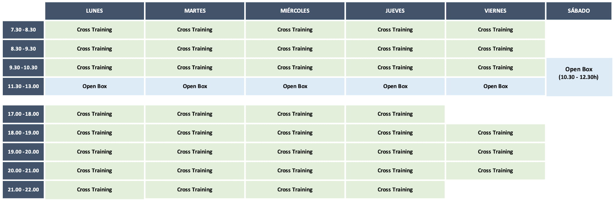 *Open box = entrenamiento libre.